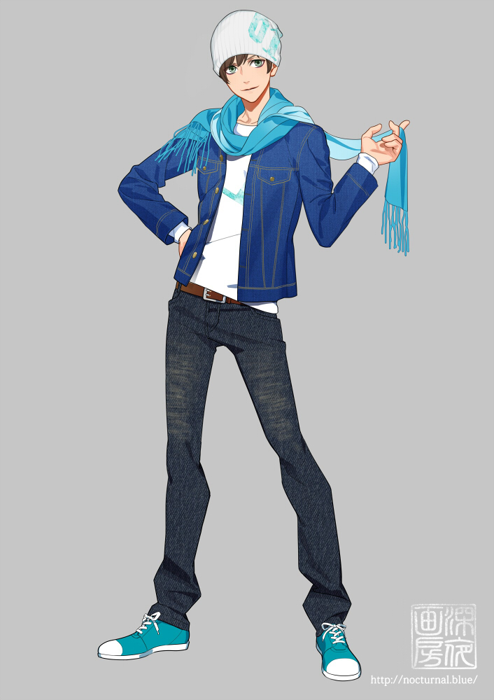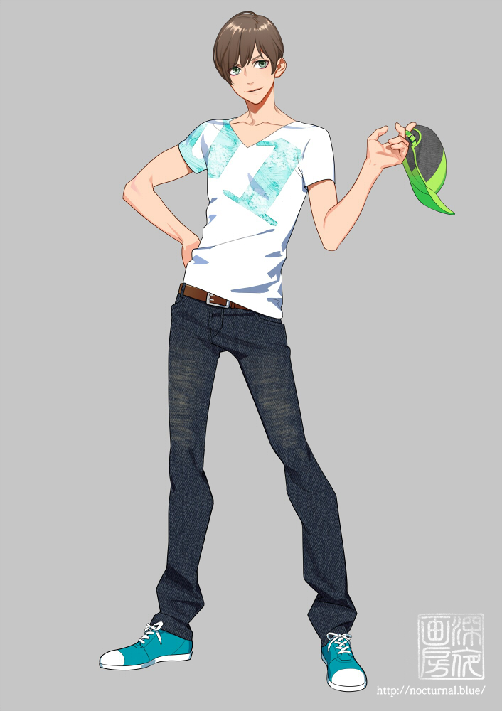 特徴を極力省いたごく普通の男子。服も特徴を極力省いたTシャツジーンズ。